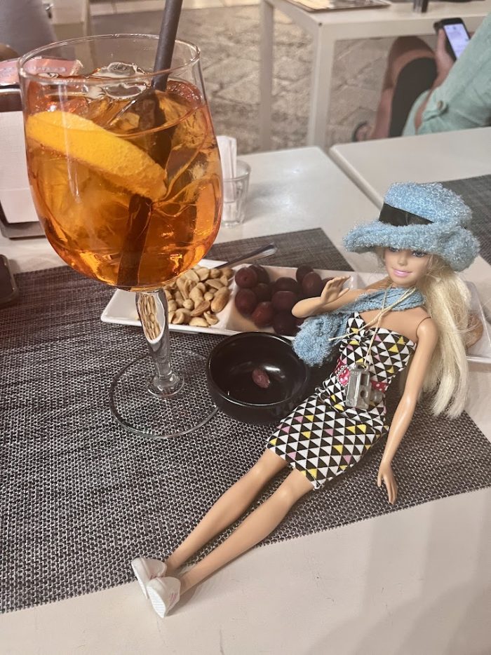 Barbiegirl viajera tomando el Apperol. Qué rico. Lo tomamos casi a diario. Foto de Barbiegirl Travels