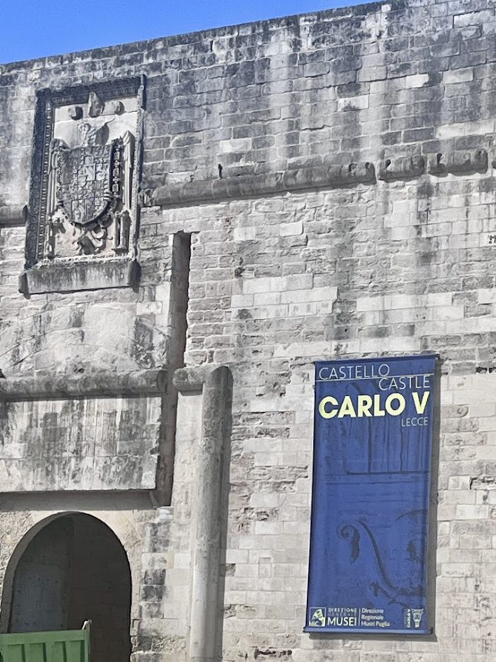 El castillo de Carlos V, una fortificación del siglo XVI rodeada de un foso, representa la mejor muestra de la influencia española en esta parte del sur de Italia. Diseñado por el arquitecto real Gian Giacomo dell’Acaya, el Castillo fue muy deseado por Carlos V de Habsburgo para defender la ciudad de Lecce de los peligros que vienen del otro lado del Adriático y de los otomanos..