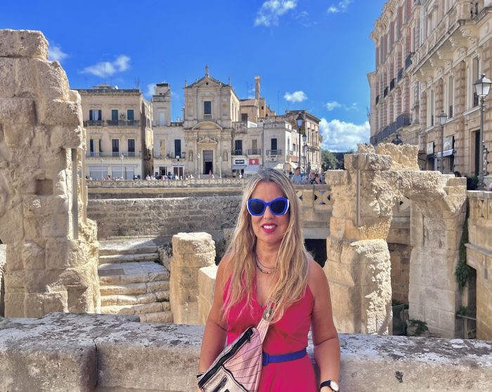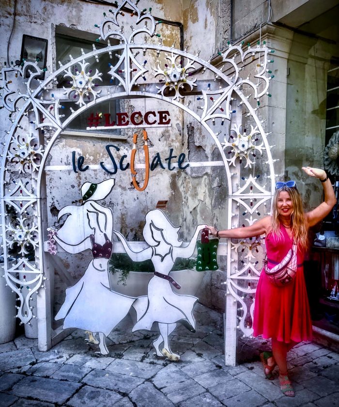Barbiegirl viajera caminando por Lecce, Puglia. Foto de Barbiegirl Travels Arts