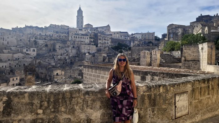 Posando desde uno de los múltiples miradores de Matera. Foto de Barbiegirl Travels Arts
