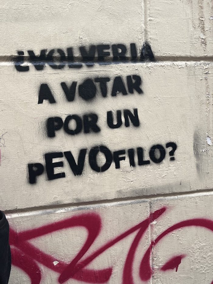 Pintada en las paredes de La Paz. La pintada de Evo Morales está totalmente defenestrada y en manos de la justifica por delitos de pedofilia