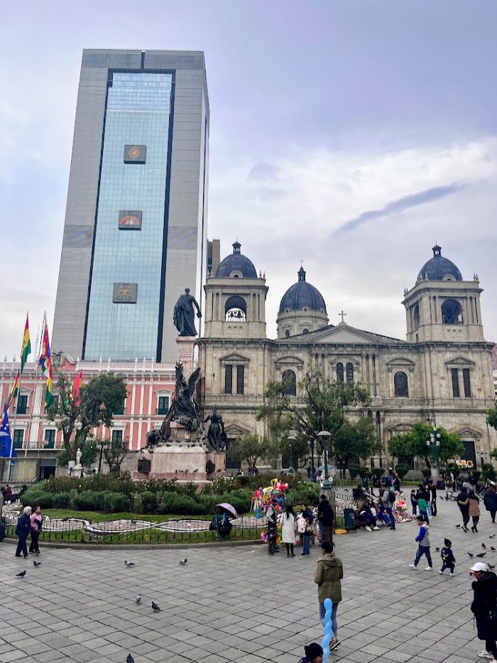 Plaza Murillo La Paz. Desde el edificio alto (casa presidencial) Evo se fugó a México. Foto de Barbiegirl Travels Arts