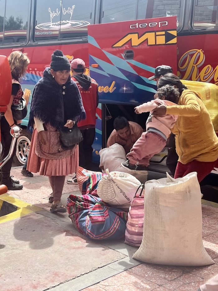 A punto de subir al bus en Potosi. Foto de Barbiegirl Travels Arts