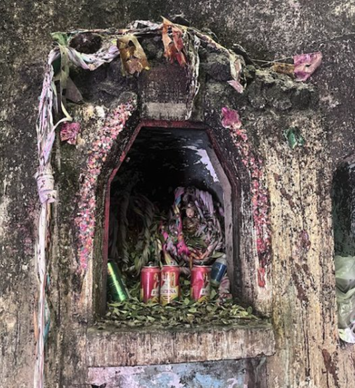 Ofrendas dentro de la mina para el Tío. Cerro Rico, Potosí. El negro proviene de la sangre derramada. Foto de Barbiegirl Travels Arts