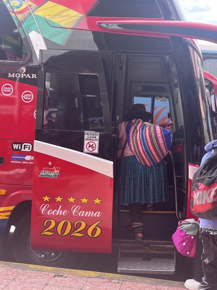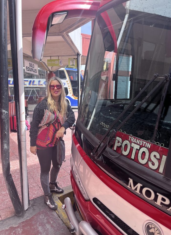 A punto de subir al bus con destino Potosi. Foto de Barbiegirl Travels Arts